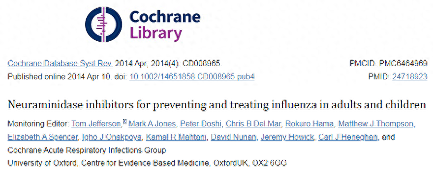 Cochrane小组通过对获得自美国美国食品局(FDA)、欧洲药品管理局(EMA)和日本监管机构拿到的几十份有关奥司他韦临床试验的研究报告分析发现: